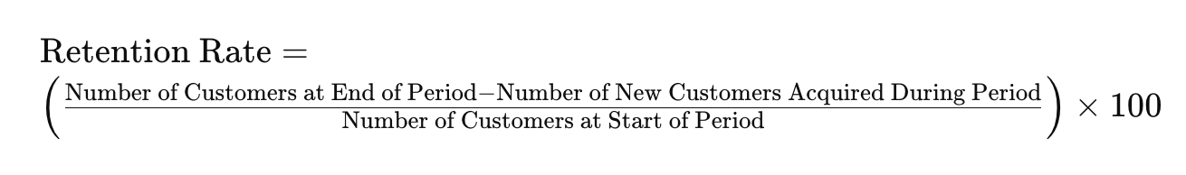 Retention rate is typically calculated over a specific period, such as a month, quarter, or year. The formula for calculating retention rate is as follows:
