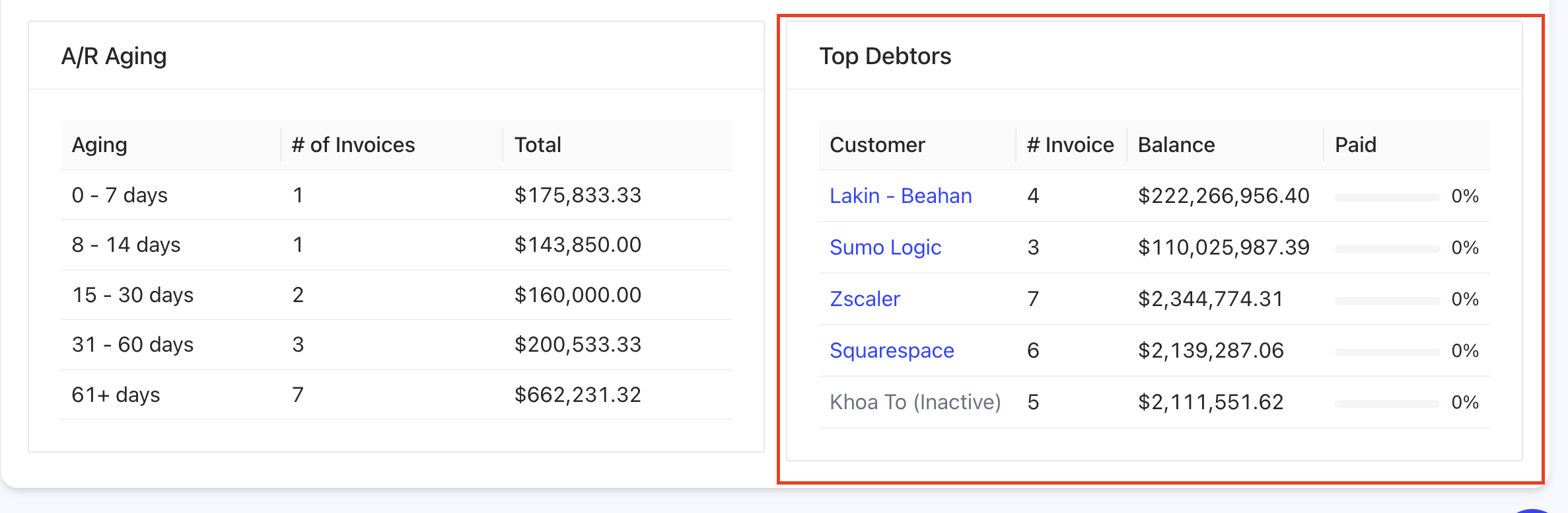 Improved Financial Visibility: Gain insights into the most significant outstanding debts within your system, facilitating better financial planning and forecasting.