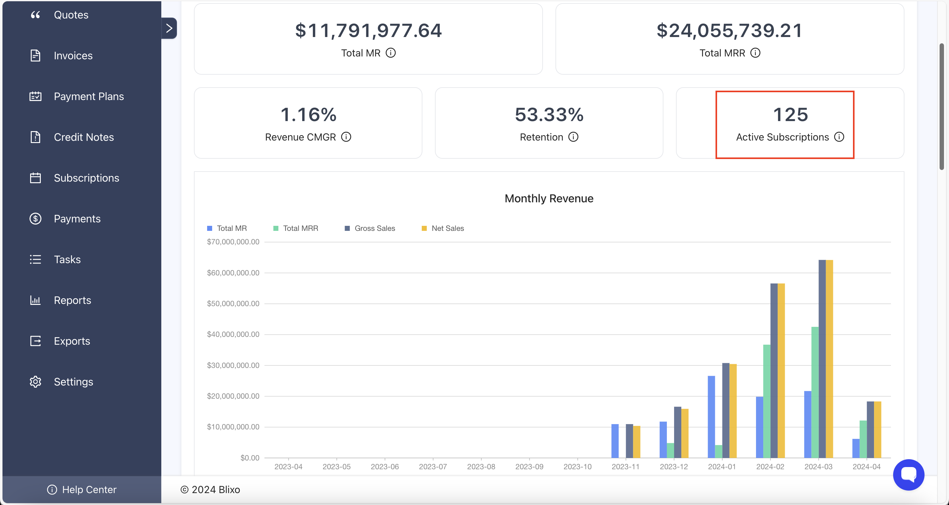 Total Active Subscriptions refer to the cumulative number of ongoing subscriptions within a specified time frame. These subscriptions are typically associated with a service or product offered by your business and are actively generating recurring revenue. It serves as a vital metric for assessing the health and success of your subscription-based business model. By tracking the total number of active subscriptions over time, you can gain valuable insights into trends, customer retention, and revenue generation.
