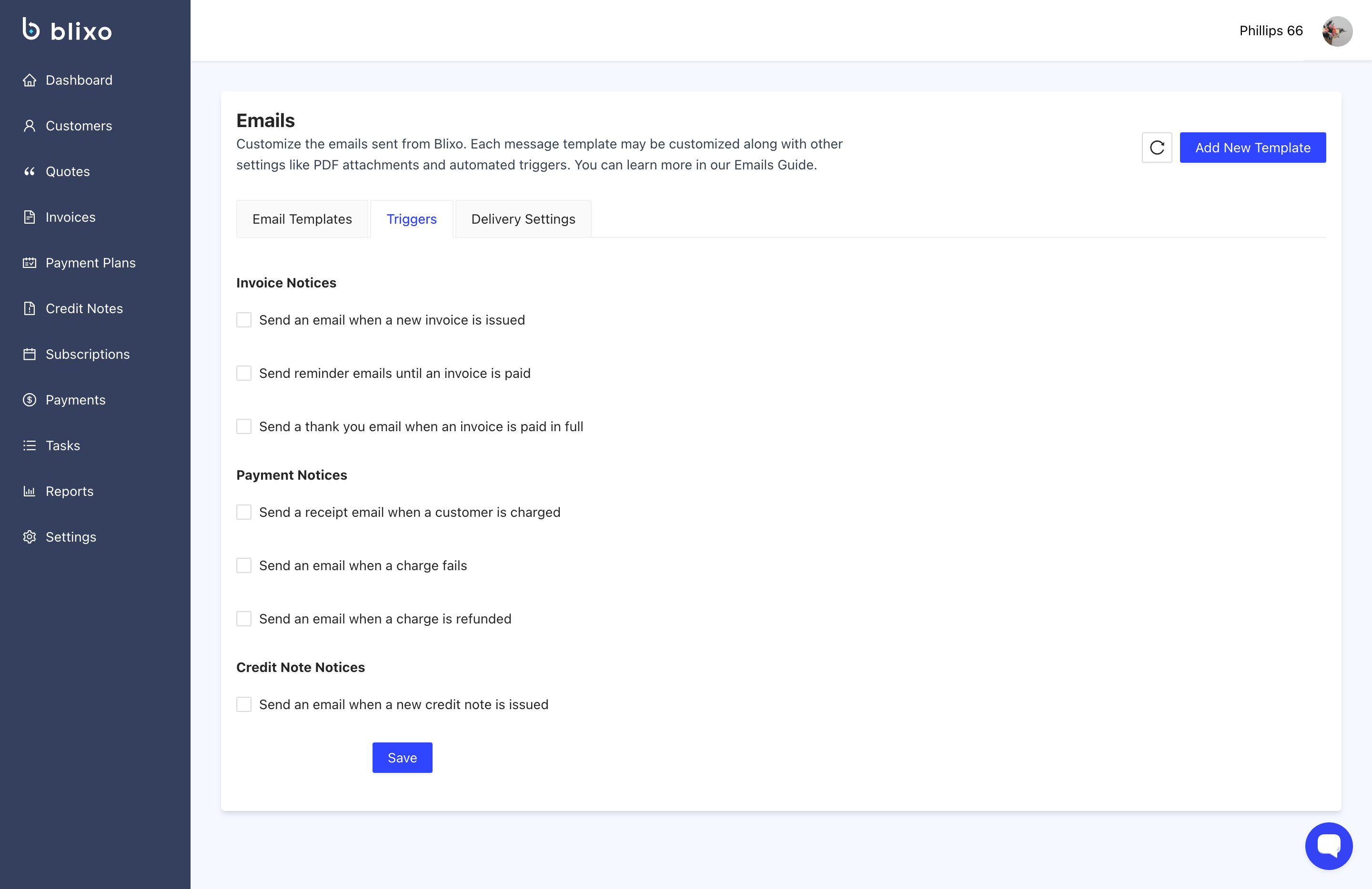 What are emails and email templates used for in Blixo? Email templates are typically used to streamline the process of sending out invoices and other communications to customers. By having templates available, Blixo users can simply fill in the necessary information and send out the email with a click of a button. This can save a significant amount of time, particularly for businesses that send out a large number of invoices on a regular basis. You can also set up these email to be triggered to send based on specific criteria or hooks.