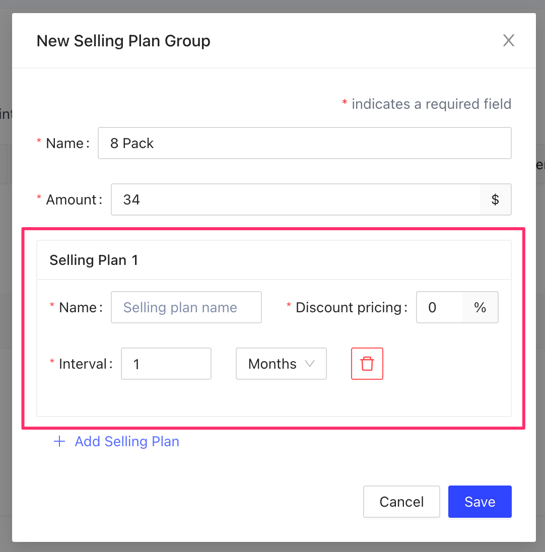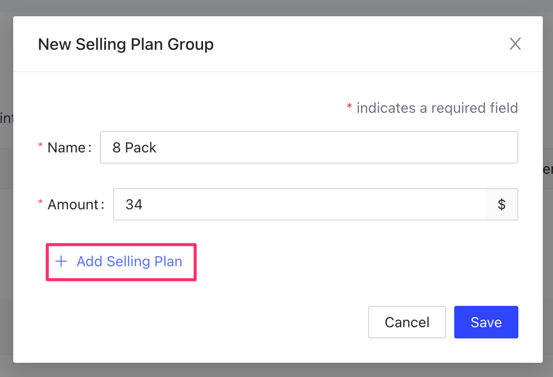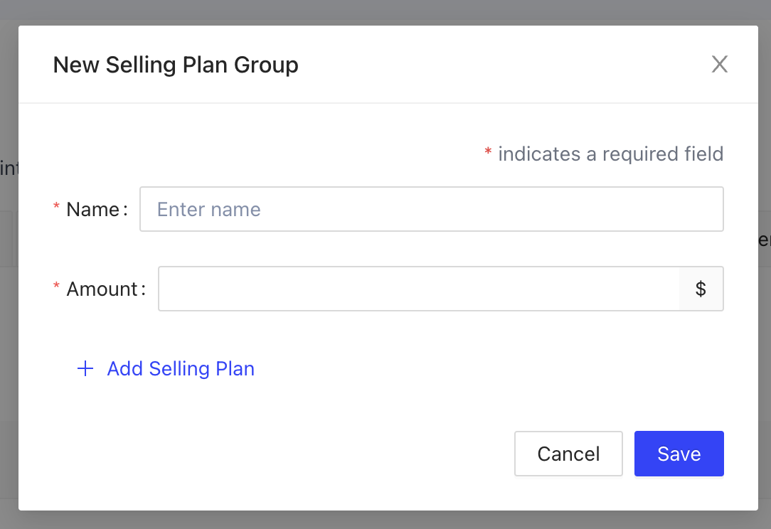 Visit the Blixo Settings > Shopify > Selling Plan Groups. Click “Add Selling Plan Group”