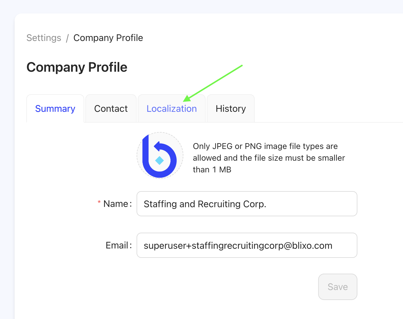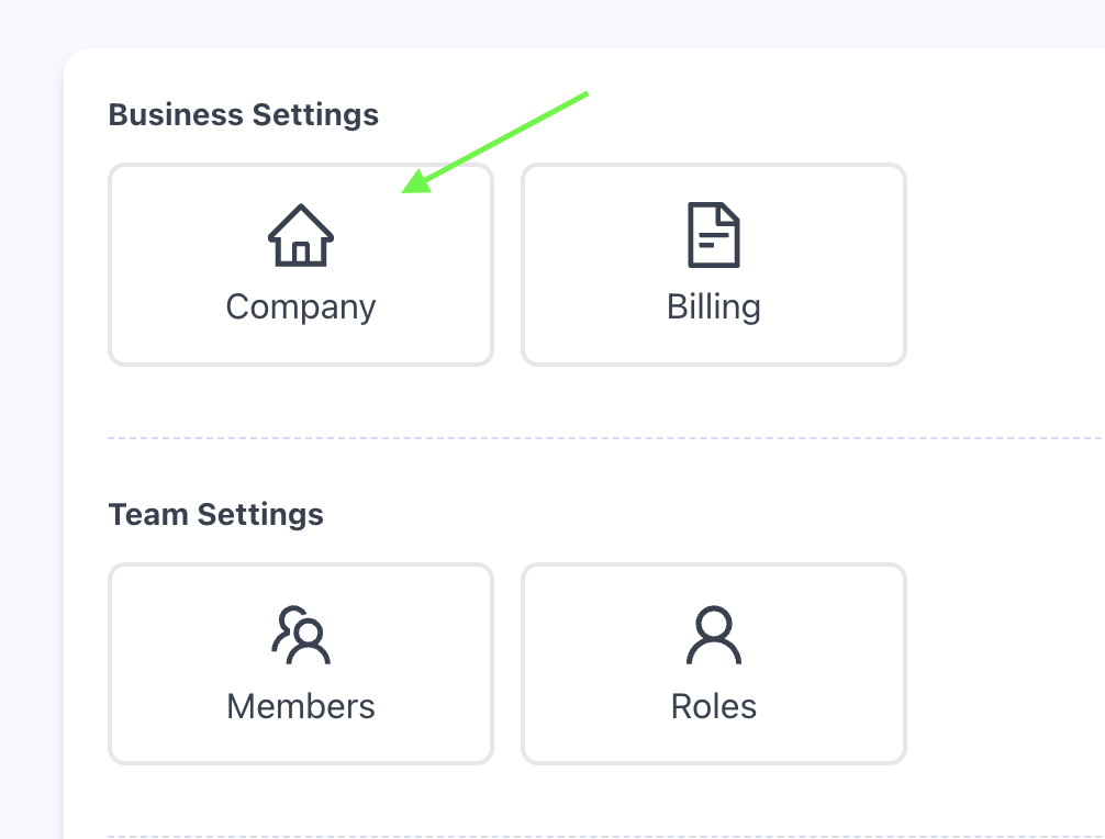 Scroll up to ‘Business Settings’ and click on ‘Company’ to go to the Company Profile page.
