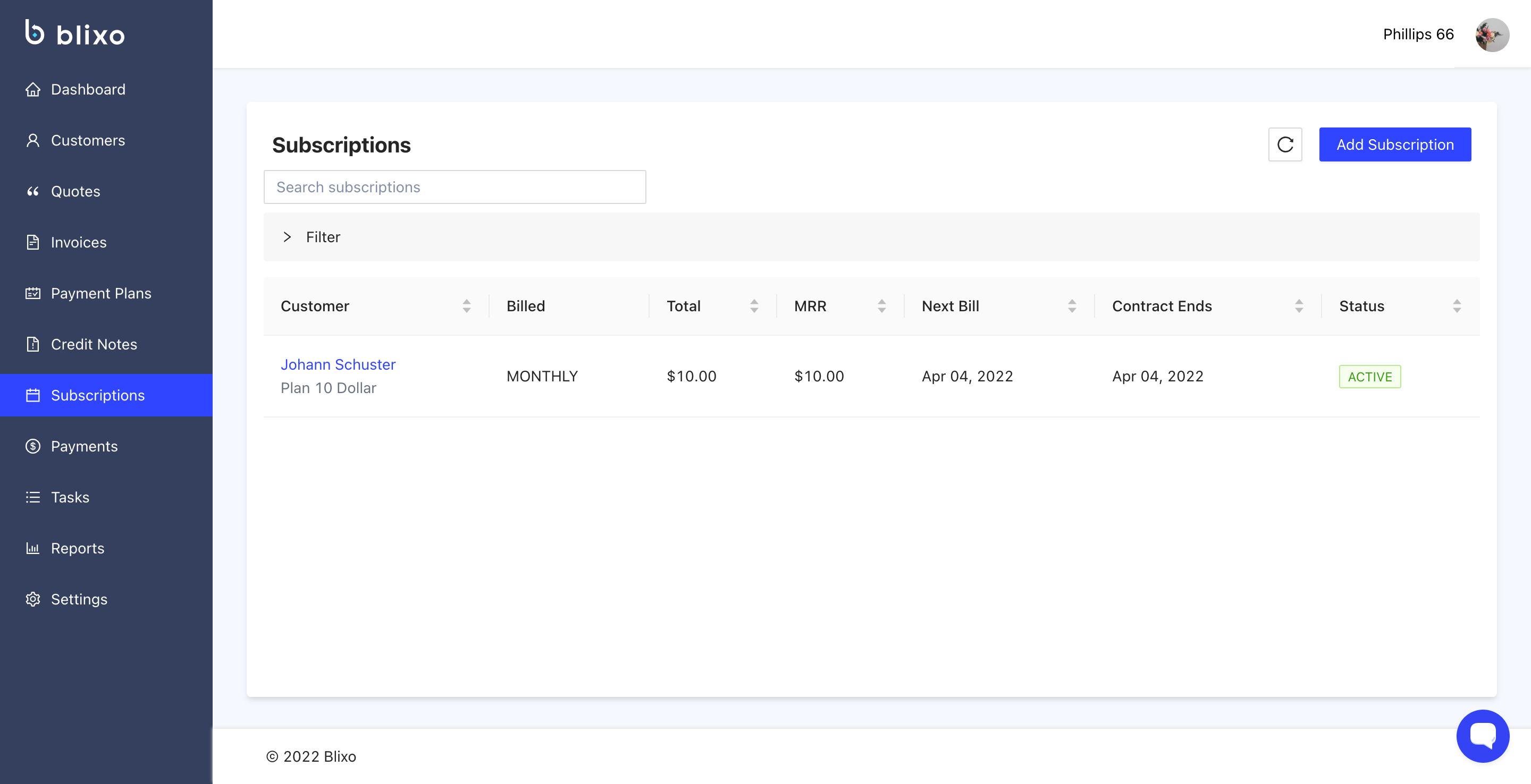 Start with clicking on “Subscriptions” on the Blixo sidebar and you will get to this view